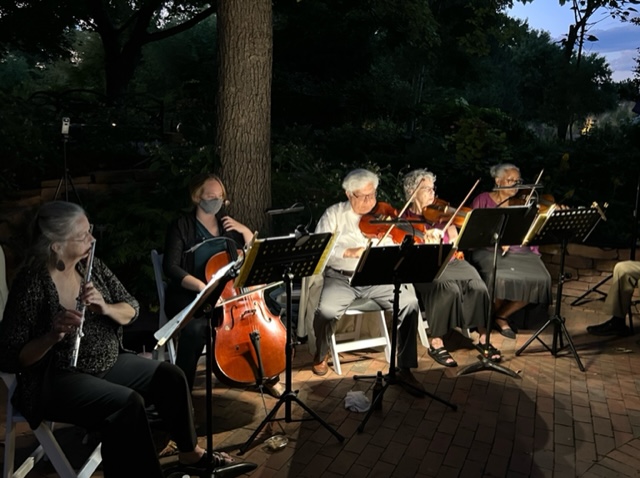 SoundTrack started as a duo in Dave Mejia’s front yard in the summer, during the height of COVID. Amy and Dave added a cellist, and then Betsy on viola – to make a quartet. We moved to the garage when the weather started turning cold, but then found a home in the Neon Apt building. There, we picked up an oboist, a pianist, bass and Shaochen – flute. After playing for the opening of the Denver Film Festival, we found ourselves homeless until Choc came to our rescue at The Wheat Ridge Center for Music and Arts. She gave us a place to call home, and we have been here ever since.